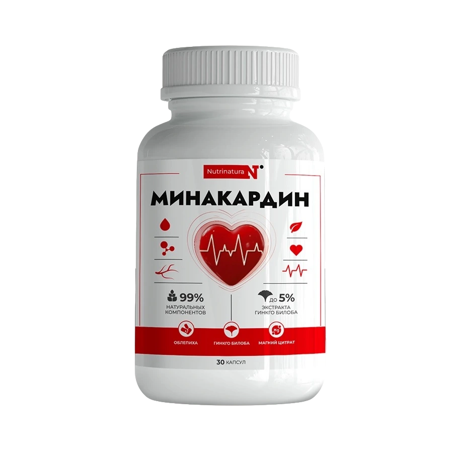 Минакардин — натуральный комплекс для поддержки сердечно-сосудистой системы и нормализации давления. Улучшает кровообращение, укрепляет сосуды и способствует стабильной работе сердца.